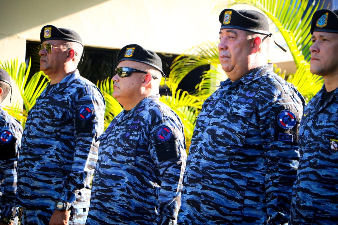 La ceremonia se llevó a cabo en la Plaza de los Caídos del recinto militar, iniciando con el izamiento de la Bandera Nacional al compás de las notas del Himno Nacional, interpretado por la banda de música de la BAPP, acompañado de la rendición de honores por parte de dos pelotones de soldados del aire.
