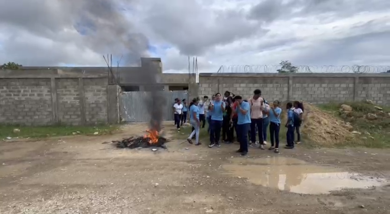 Luperón, Puerto Plata. – Estudiantes del Liceo Elpidio Brito Cueto, ubicado en el distrito municipal de Belloso, realizaron una protesta la mañana de este jueves en reclamo de la reanudación de los trabajos de construcción de la planta física de ese centro educativo.