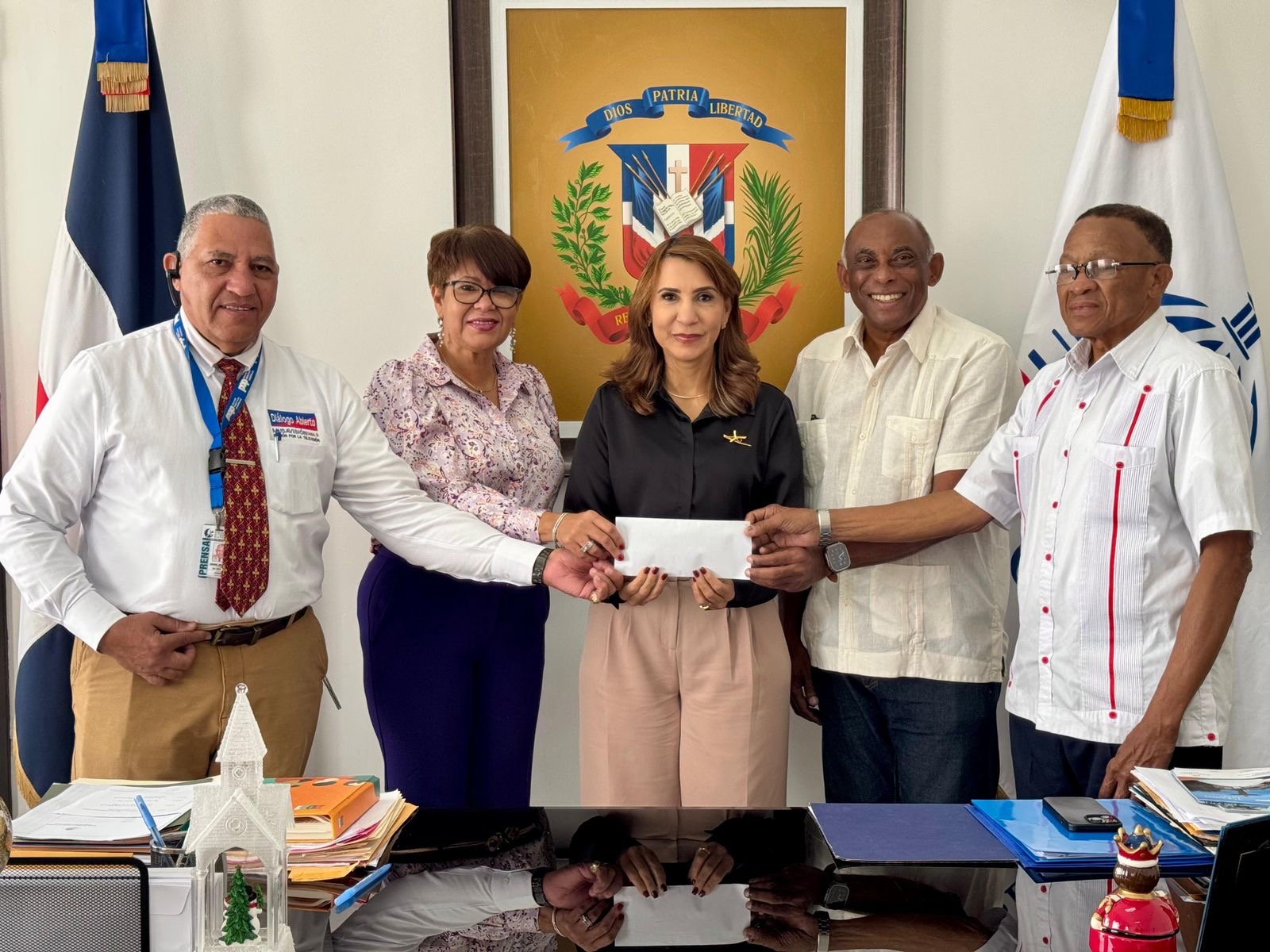 El dinero fue recibido por los representantes del SNTP: José Bierd, Xiomara Domínguez y “El Chino” Díaz Gómez, quienes de inmediato depositaron el monto en la cuenta bancaria de la organización en el Banco de Reservas.