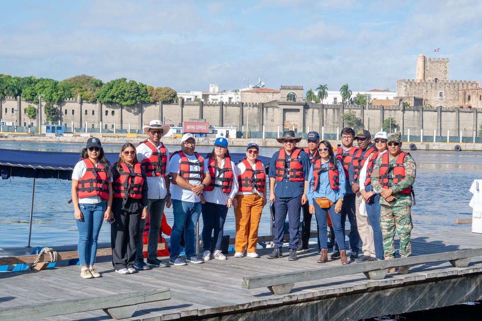 En el recorrido participó el viceministro de Gestión Ambiental, del Ministerio de Medio Ambiente y Recursos Naturales, Lenin Bueno; Ana María Díaz, representante residente del PNUD en República Dominicana; Sebastián Bros, gerente de operaciones local de The Ocean Cleanup; y la coordinadora de planificación de proyectos de URBE, Sarah Batista.